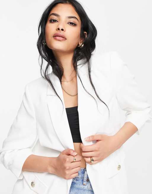 River Island Contrast Satin Lapel Blazer in White Lyst Australia Very well made.
