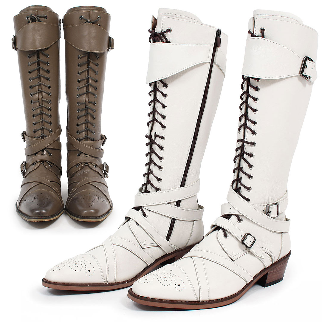 Handmade Leather Buckle Belted Lace Up Long Boots 001 Very well made.