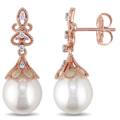 White Rice Freshwater Cultured Pearl with Diamond Accent Dangle Very well made.