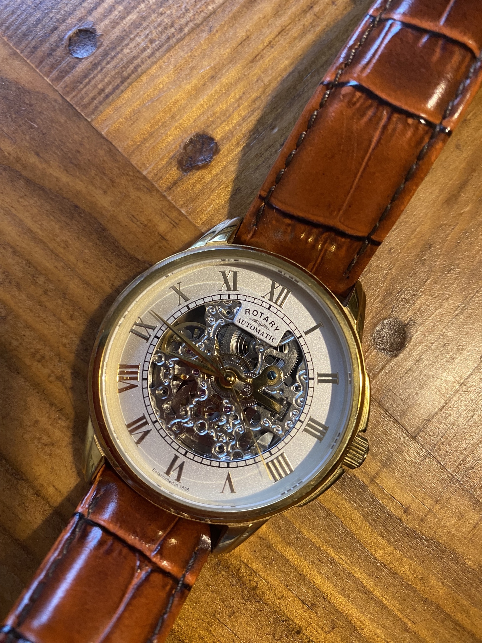 Rotary Mens Automatic Swiss Brown Leather Strap Skeleton Dial Very well made.