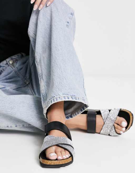 ASOS DESIGN Fiery Sandali bassi neri con fascette incrociate e strass Very well made.