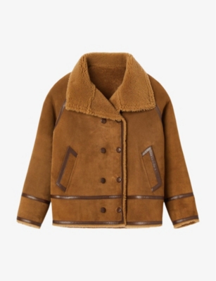 SANDRO High neck double breasted shearling coat Selfridges Very well made.