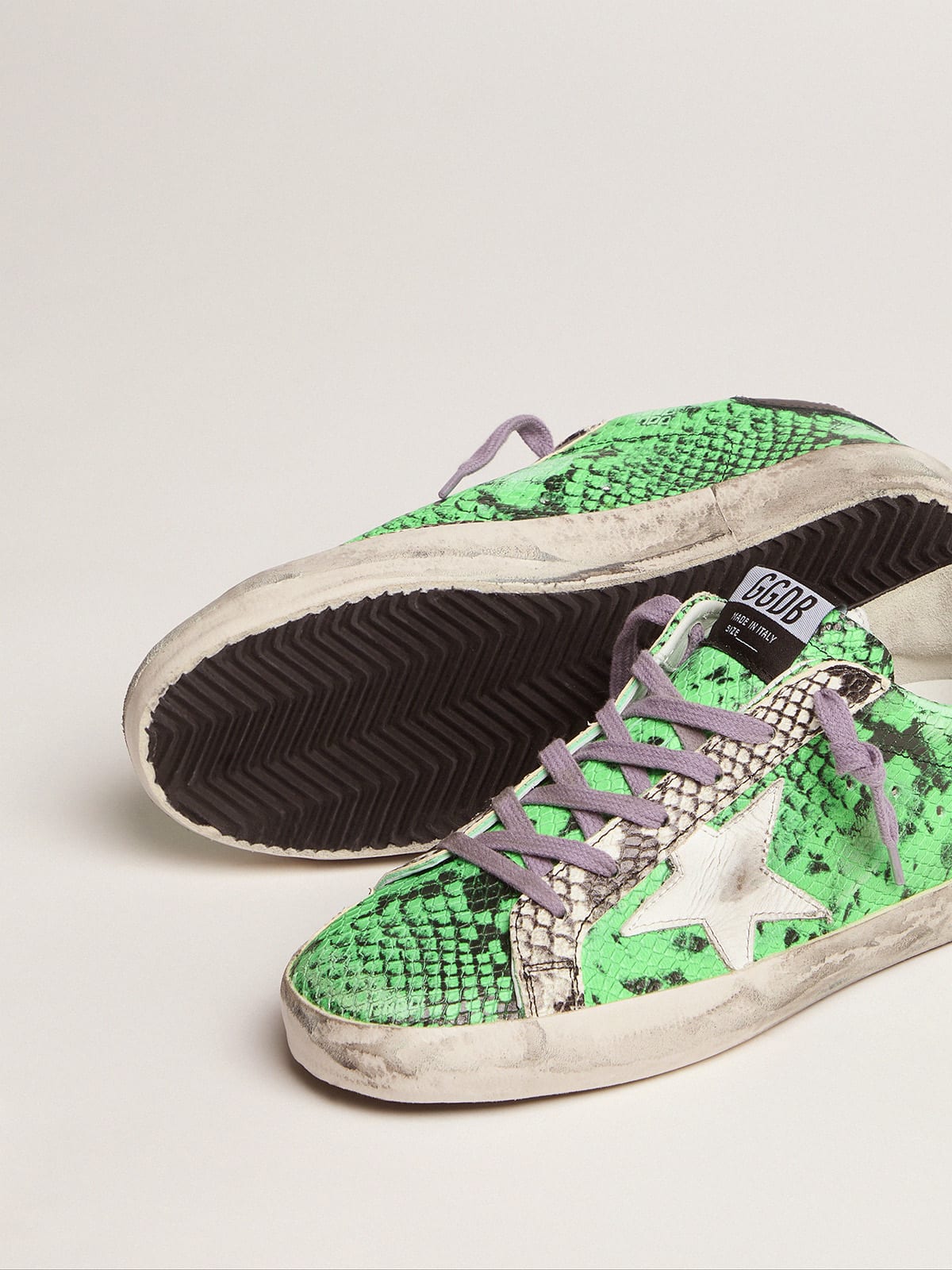 Super Star sneakers in two tone snake print leather Very well made.