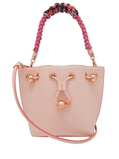 Romy Mini Bucket Bag With Woven Handle In Light Pink Very well made.