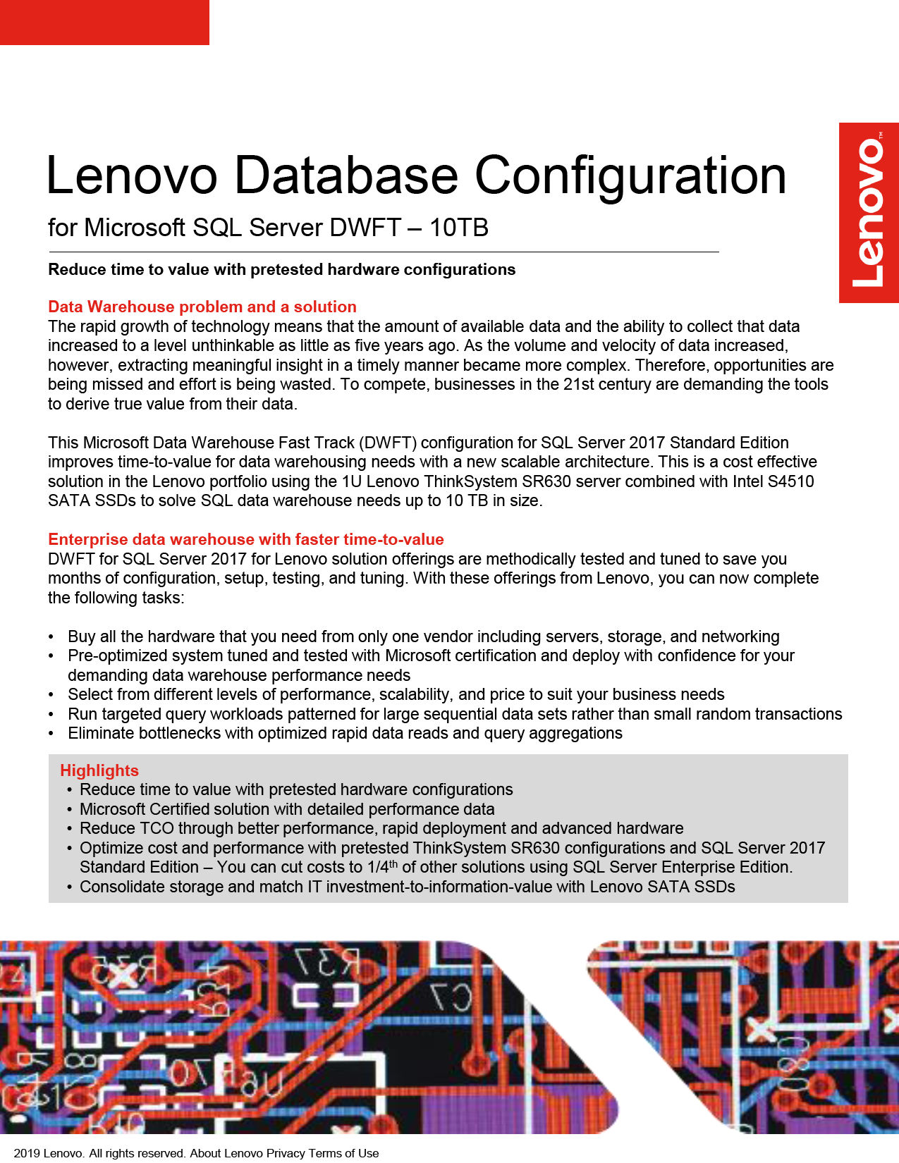 Lenovo Database Configuration for Microsoft SQL Server DWFT 10TB Very well made.