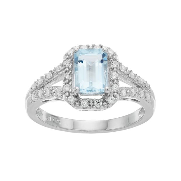 Sterling Silver Aquamarine Cubic Zirconia Halo Ring Very well made.