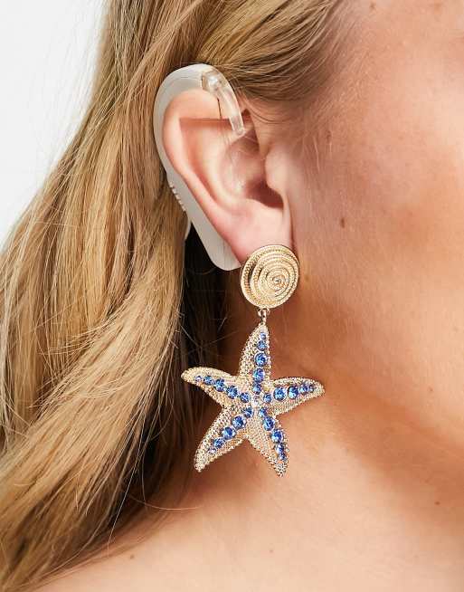 Topshop embellished starfish drop earrings in gold and blue Very well made.