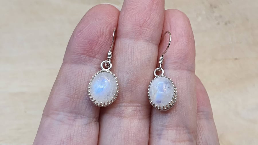 Simple oval Rainbow Moonstone earrings. Minimal Folksy Very well made.