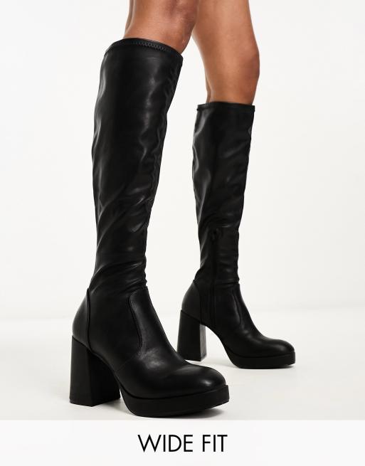 schuh Della Stivali aderenti neri al ginocchio a pianta larga con tacco Very well made.