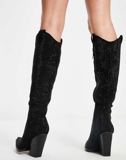 ASOS DESIGN Catapult Stivali al ginocchio con tacco stile western neri con strass Very well made.