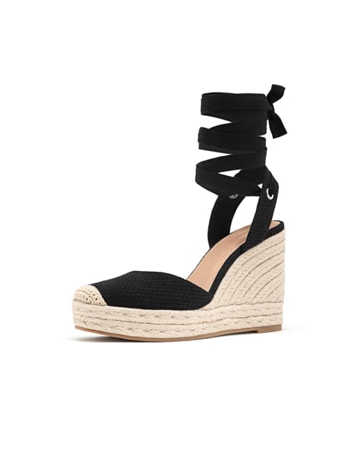 Stradivarius black lace up espadrille wedge ASOS Lace up Very well made.