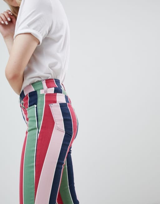 ASOS DESIGN pencil straight leg jeans with coloured stripe print Very well made.