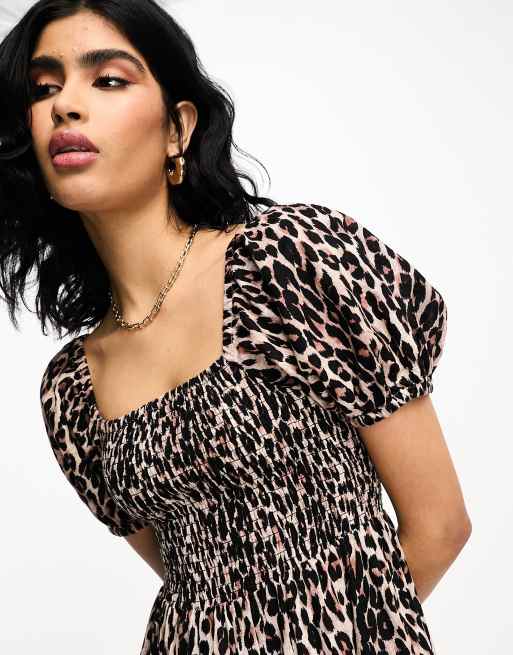 Accessorize puff sleeve shirred bodice maxi summer dress in leopard print Very well made.
