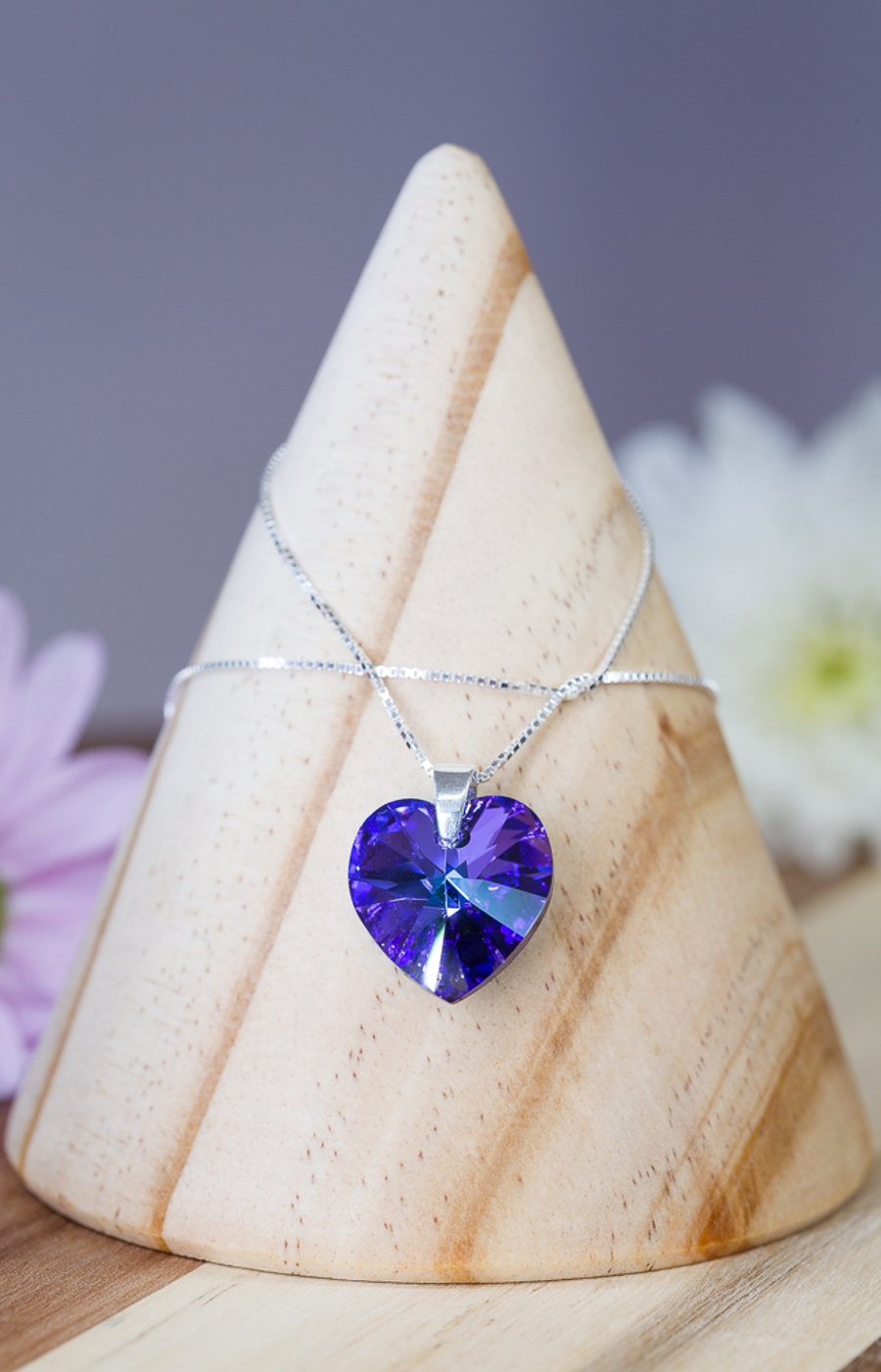 Necklace pendant swarovski purple heart on ster Folksy Very well made.