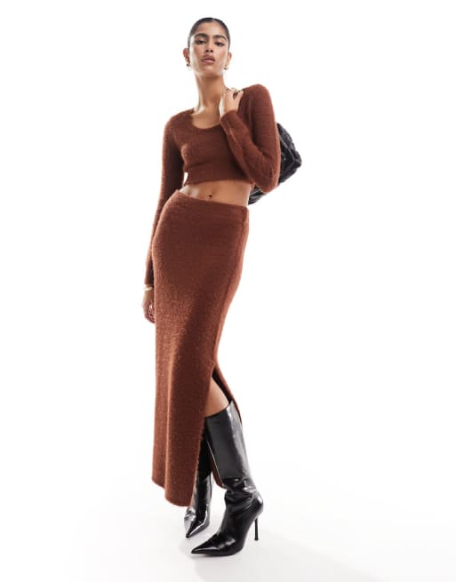 ASOS DESIGN crop sweater with scoop neck maxi skirt set in fluffy Very well made.