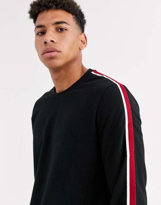 Polo Ralph Lauren loungewear sweatshirt in black with side stripe Very well made.
