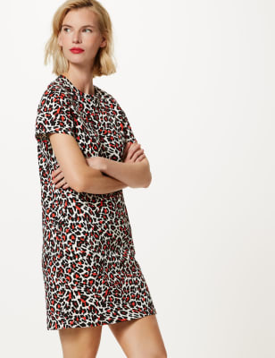 Pure Cotton Animal Print T Shirt Dress M S Collection M S Very well made.