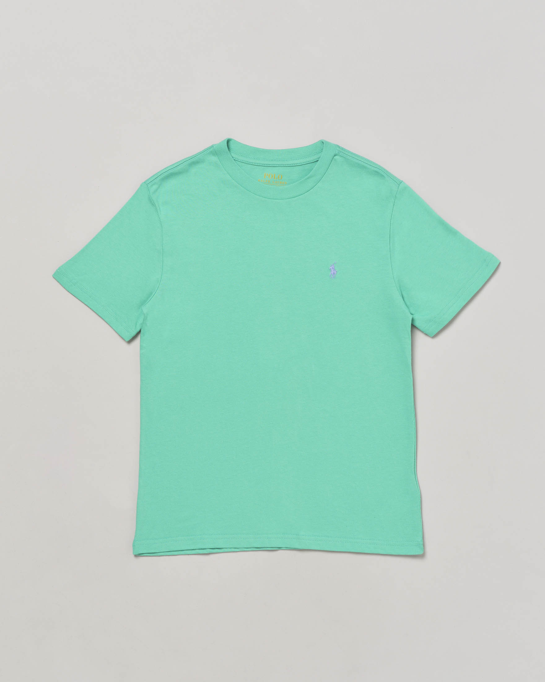 T shirt verde acqua a mezza manica in cotone con logo pony lilla S XL Very well made.
