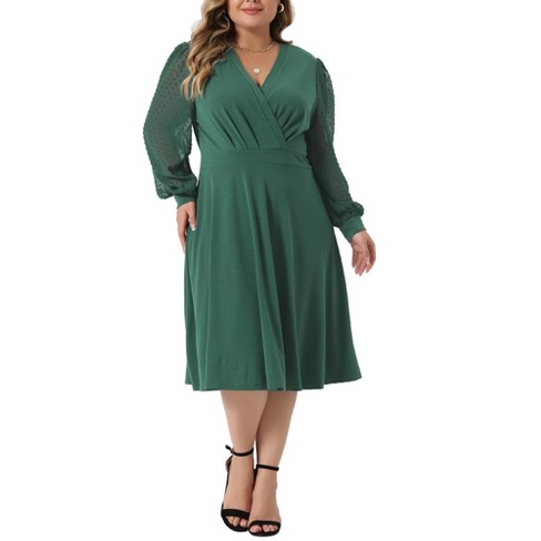 Agnes Orinda Women s Plus Size Long Swiss Dots Sleeves Wrap V Neck Very well made.