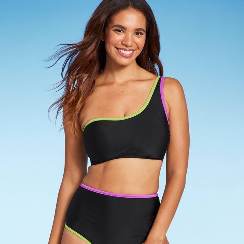 Women s Contrast Binding One Shoulder Bralette Bikini Top Shade Very well made.