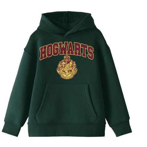 Harry Potter Hogwarts Text Crest Logo Youth Boys Forest Green Very well made.