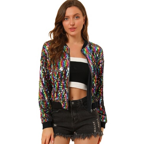Allegra K Women s Sequin Long Sleeve Glitter Shiny Party Bomber Very well made.
