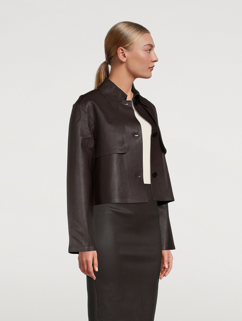 Theory Cropped Leather Trench Coat Farfetch Very well made.