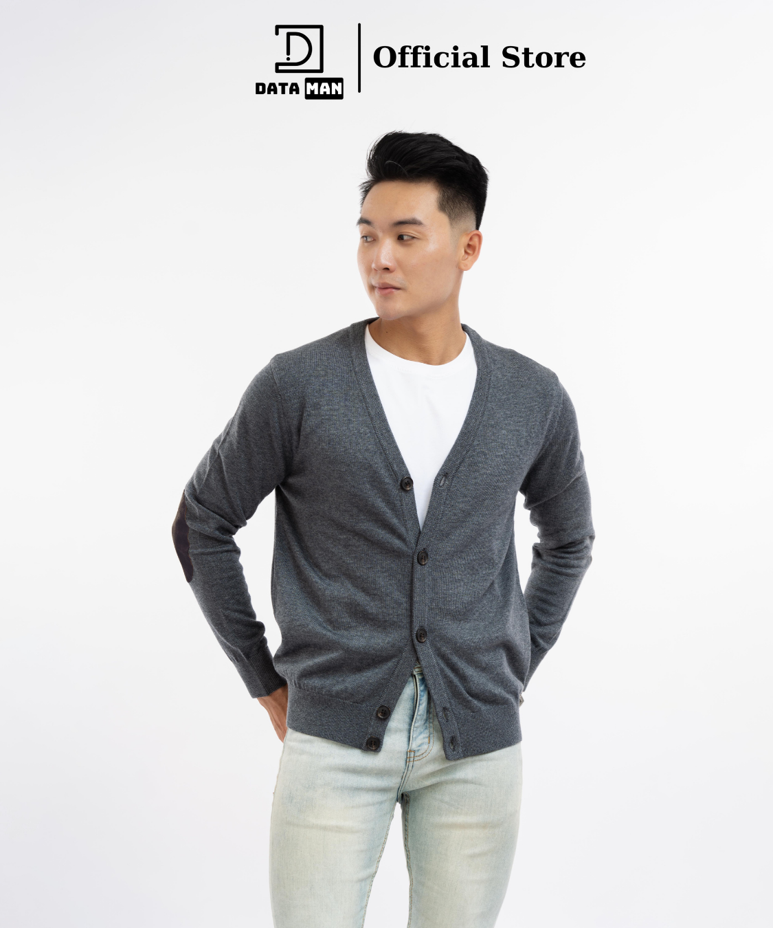 Thin men s CARDIGAN open buttons V neck elbow answer soft Very well made.