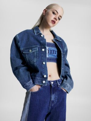 Buy Tommy Hilfiger Back Logo Cropped Denim Cargo Jacket In Blue Very well made.