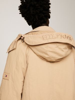 NWT MEN TOMMY HILFIGER KHAKI COAT FULL ZIP HOODED PUFFER JACKET SZ M L Very well made.