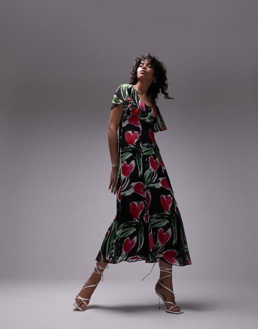 Topshop Vestito da giorno midi rosso e viola a fiori Very well made.