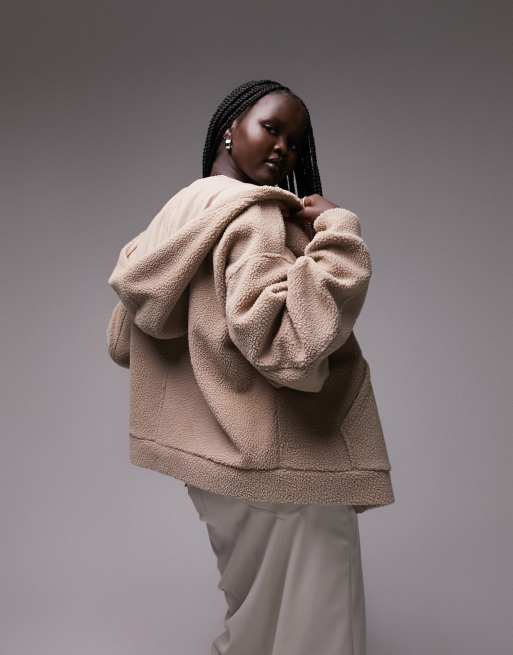 Topshop borg zip through cropped fleece hoodie in neutral Very well made.