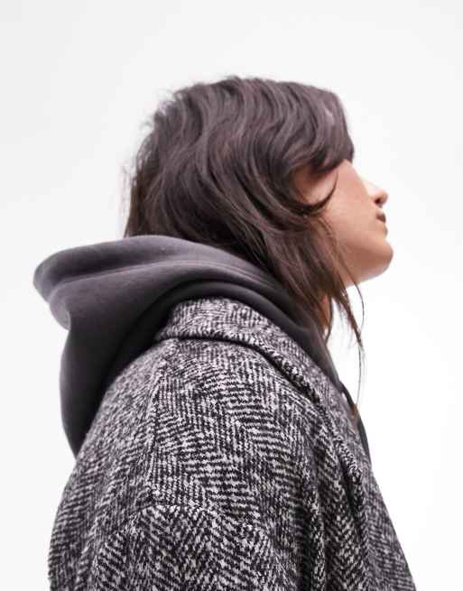 TOPSHOP Herringbone Wool blend Formal Coat in Black Lyst UK Very well made.