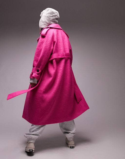 Topshop super oversized brushed trench coat in bright pink ASOS Very well made.