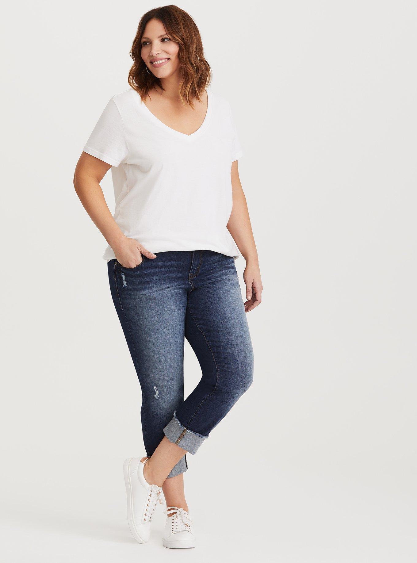 Plus Size Crop Boyfriend Straight Vintage Stretch Mid Rise Jean Very well made.