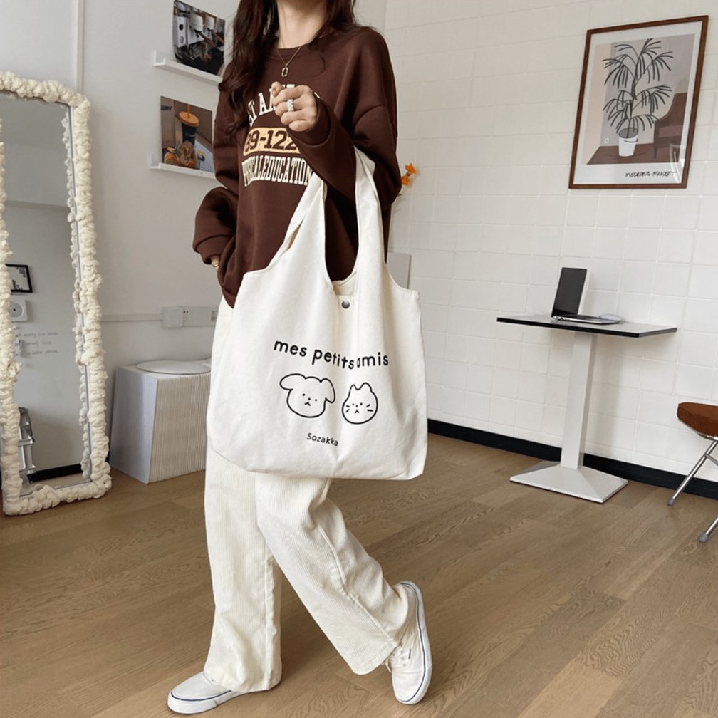 SOZAKKA TOTE BAG KOREAN STYLE STUDENT TOTE BAG CANVAS TOTE Very well made.