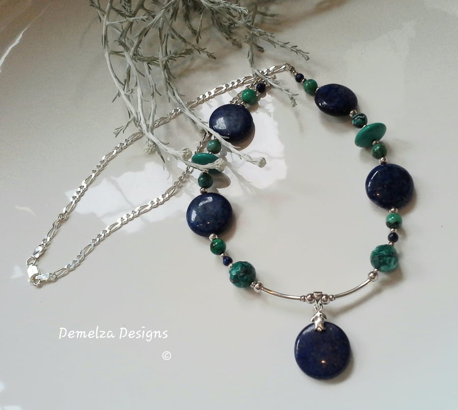 Turquoise Lapis Lazuli Necklace 925 Sterling Silver ONE OFF Very well made.