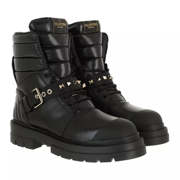 Valentino Garavani Rockstud Combat Boots Leather Black Biker Boot Very well made.