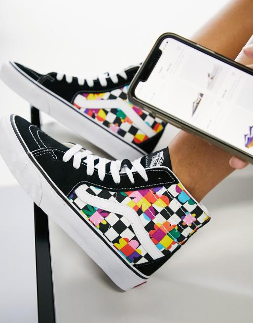 Vans SK8 Hi floral checkerboard trainers in black and white Very well made.
