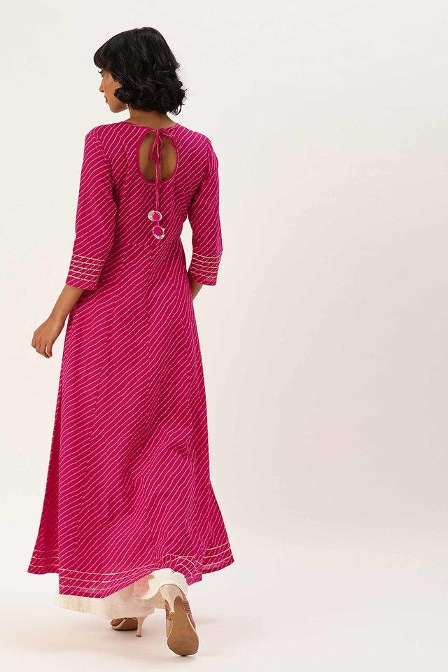 Buy VARANGA Purple Fuchsia And Off White Leheriya Anarkali Kurta Very well made.