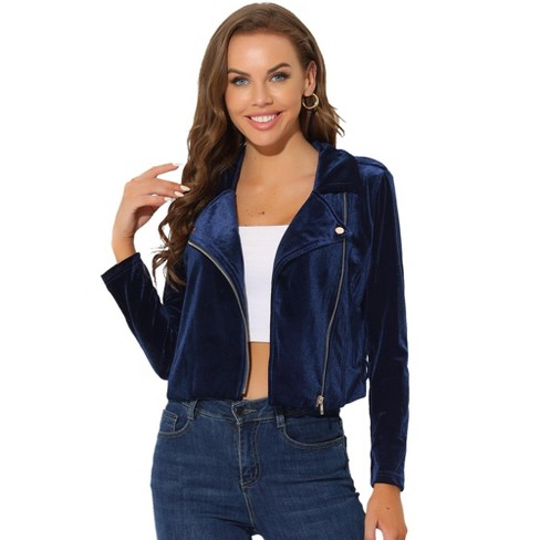 Allegra K Women s Velvet Notched Lapel Collar Crop Belted Moto Very well made.