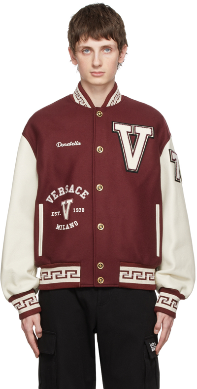 Versace Felted wool And Leather Varsity Jacket In Red ModeSens Very well made.