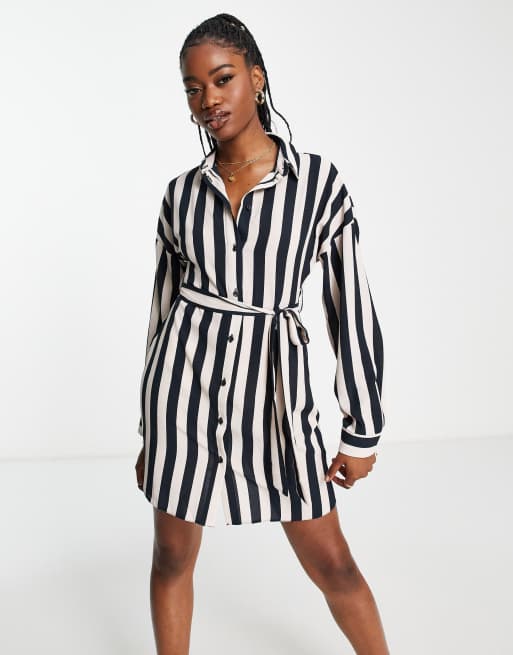 ASOS DESIGN Vestito chemisier corto a righe con bottoni e cintura Very well made.
