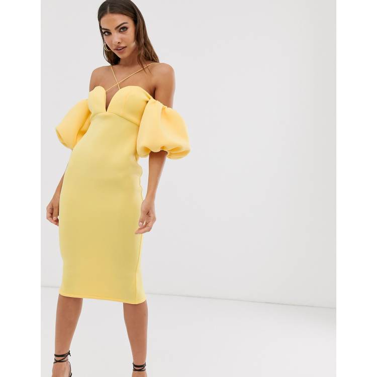 ASOS DESIGN Vestito midi con spalline maniche a sbuffo e scollo Very well made.