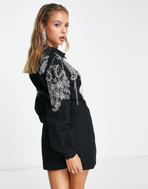 ASOS DESIGN Vestito corto stretto in vita in twill nero con Very well made.