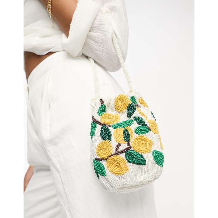 Accessorize mini beaded fruit drawstring bag in yellow and white Very well made.