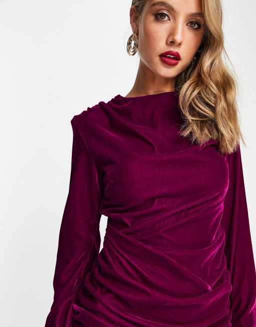 ASOS DESIGN high neck velvet drape mini dress in berry ASOS Very well made.