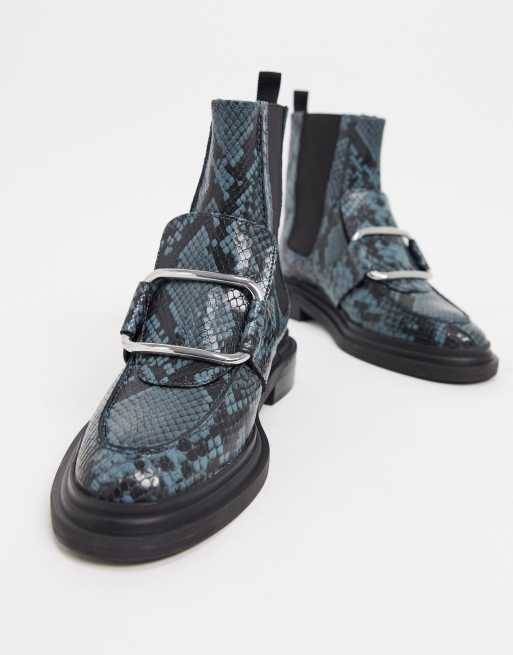 ASOS DESIGN Accurate premium leather hardwear ankle boots in blue Very well made.