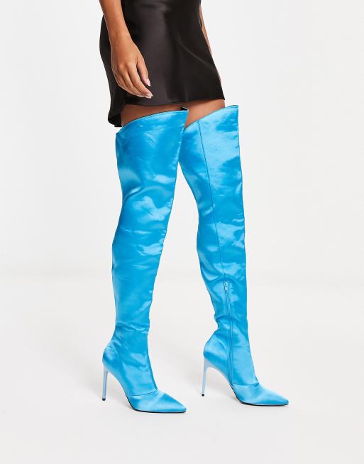 ASOS DESIGN Kayla heeled thigh high boots in teal ASOS Very well made.