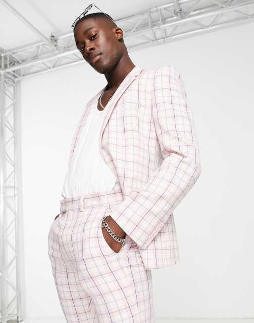 ASOS DESIGN power shoulder suit jacket in pink plaid with Very well made.